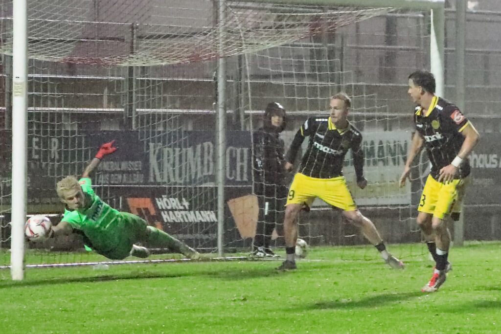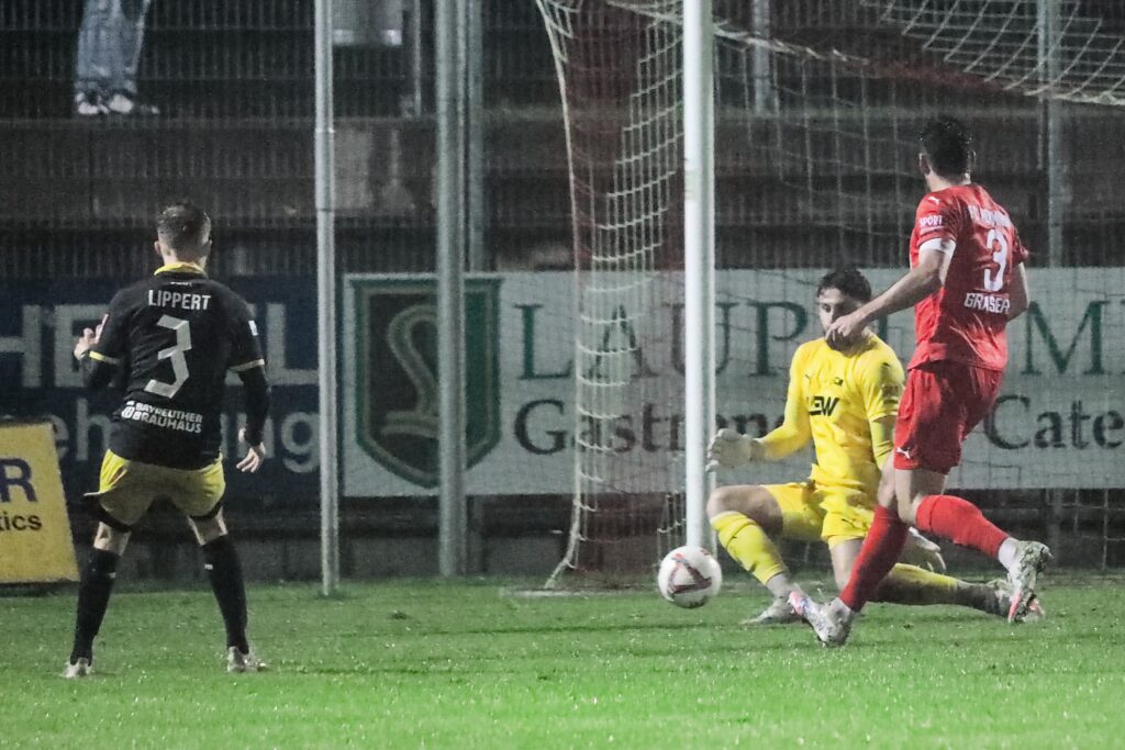 Die sehenswerteste Aktion an diesem nasskalten Abend lieferte Bayreuths Torhüter Lino Kasten mit einem sensationellen Reflex gegen David Bauer (68.). Der nachverpflichtete ehemalige Junioren-Nationaltorhüter stand erstmals im Bayreuther Kasten, nachdem beide Stammkeeper der „Altstadt“ verletzt sind und die Nummer drei, Youngster Henry Höcker nach der 0:3 Heimniederlage gegen Fürth II arg in die Kritik geraten war.