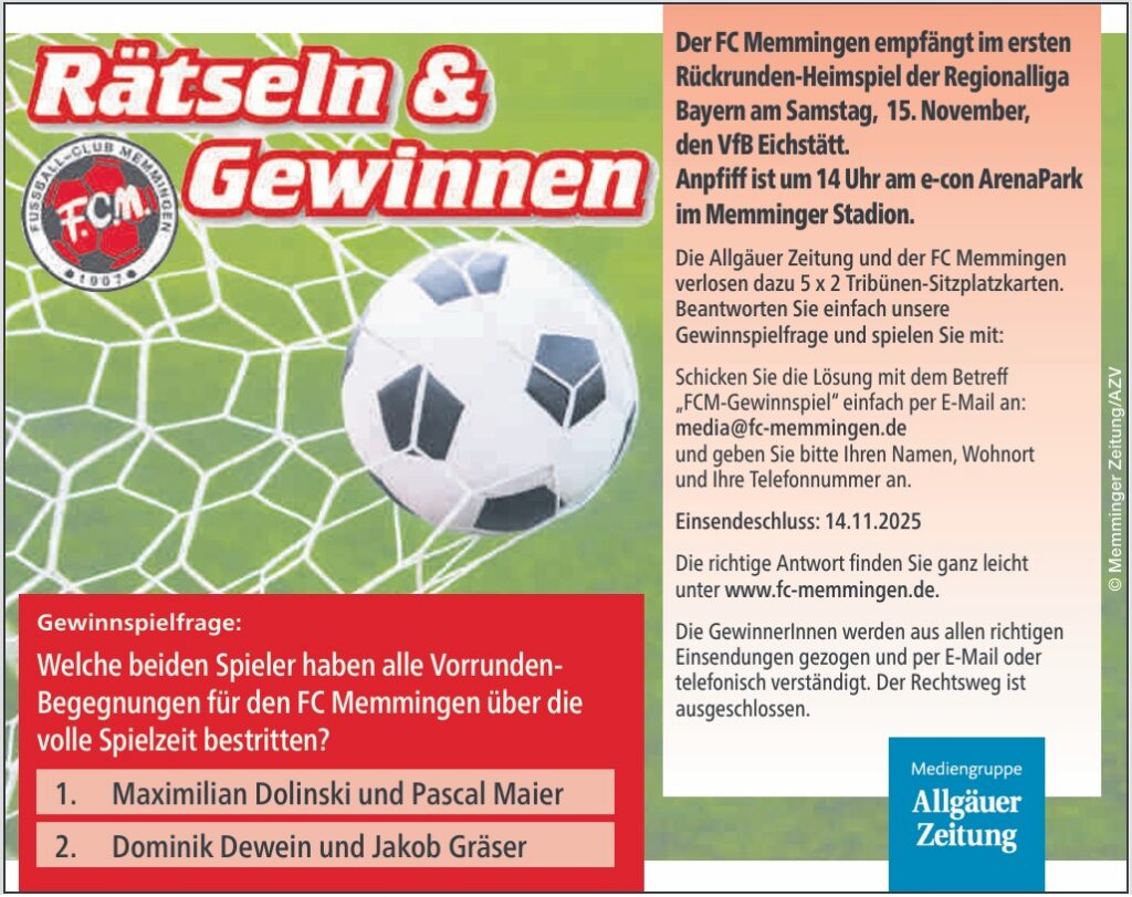 Das Gewinnspiel ist auch in der Mittwochsausgabe (12.11.25) der Allgäuer und Memminger Zeitung Zeitung abgedruckt.