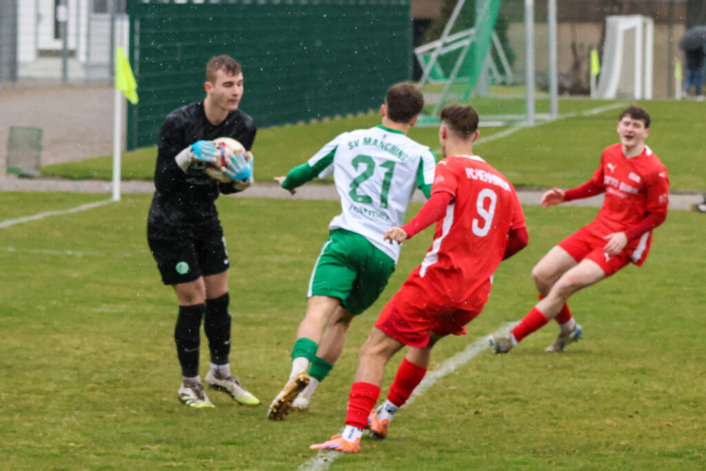 Manching kam nach dem Wechsel besser in die Partie und zu Möglichkeiten. FCM-Keeper Luis Stanzel parierte gut gegen Timo Jung (61.). Beim Ausgleich durch Fabian Neumayer, der stramm aus kurzer Distanz, brachte er seine Hände nicht mehr rechtzeitig hoch.