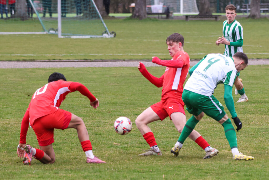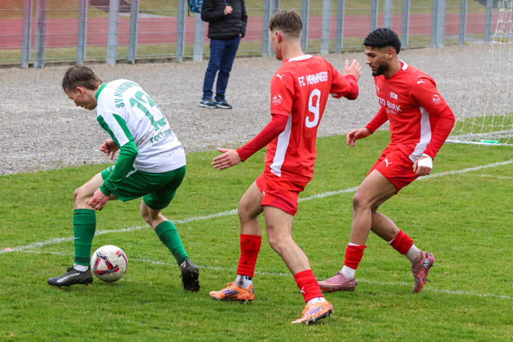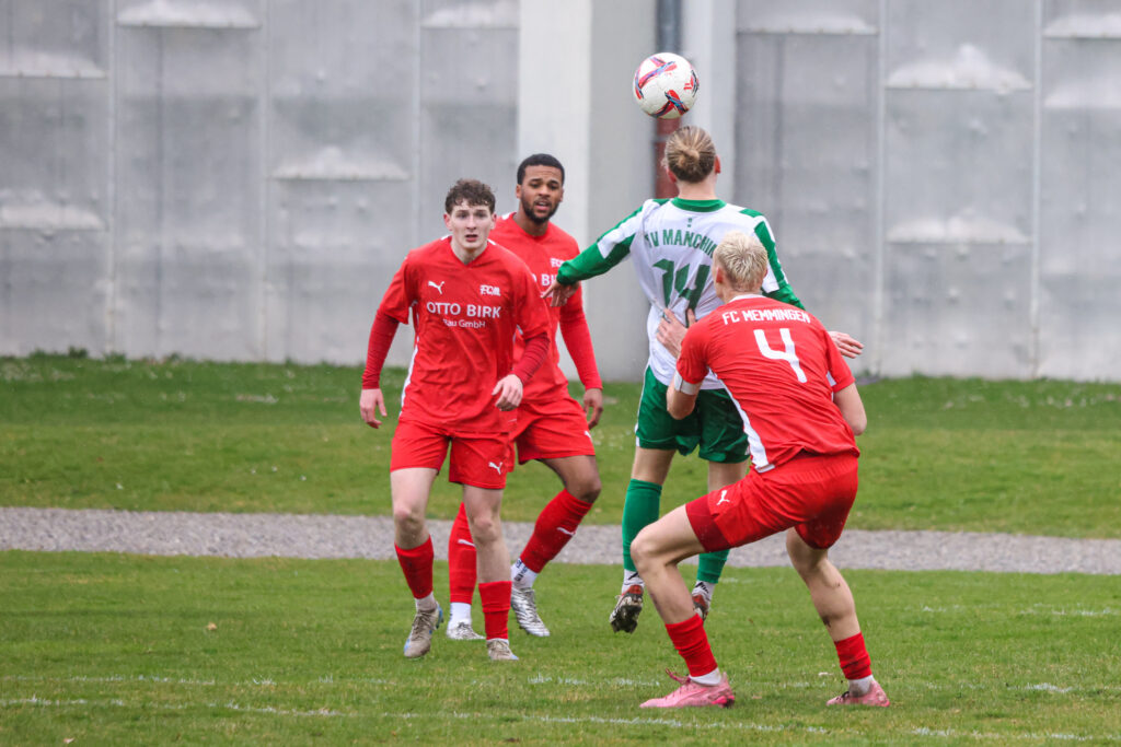 Unsere U21-Mannschaft ist im Heimspiel gegen den SV Manching nicht über ein 1:1 (1:0)-Unentschieden hinausgekommen. Damit bleiben die Memminger Landesliga-Kicker auf einem Relegationsplatz stehen. Auf dem schwer bespielbaren Südplatz im Memminger Stadion machten beide Teams trotz widrigem Regenwetter zunächst recht viel Tempo. Der tiefe Boden sorgte auch für schnelle Ballverluste, es ging in der Anfangsphase schnell hin und her.