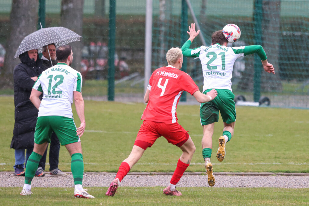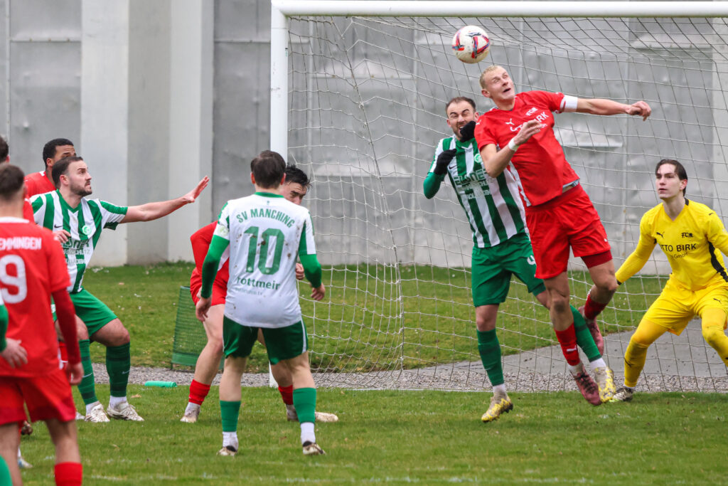 Manching hatte in der 13. Minute die bis dahin beste Möglichkeit, aber Timo Jung verpasste knapp. Beinahe im Gegenzug die Memminger Führung: Nach einer Passstafette im Strafraum schlug Felix Geiger noch einen Haken und versenkte die Kugel im langen Eck zum 1:0 (15.). Das gab zwar Sicherheit, aber der FCM schwächte sich durch eine Zeitstrafe (26.) gegen Flemming Schug selbst, überstand diese Phase aber unbeschadet.
